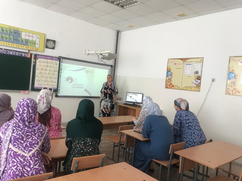 15.08.2023В рамках года Педагога и наставника в МБОУ «Каргалинская СОШ 1» педагогами-наставниками Темархаджиевой Л.С. и Селимхановой Р.Х. было проведено занятие с молодыми учителями на тему « Анализ работы учителя за год и план работы на новый учебный год».