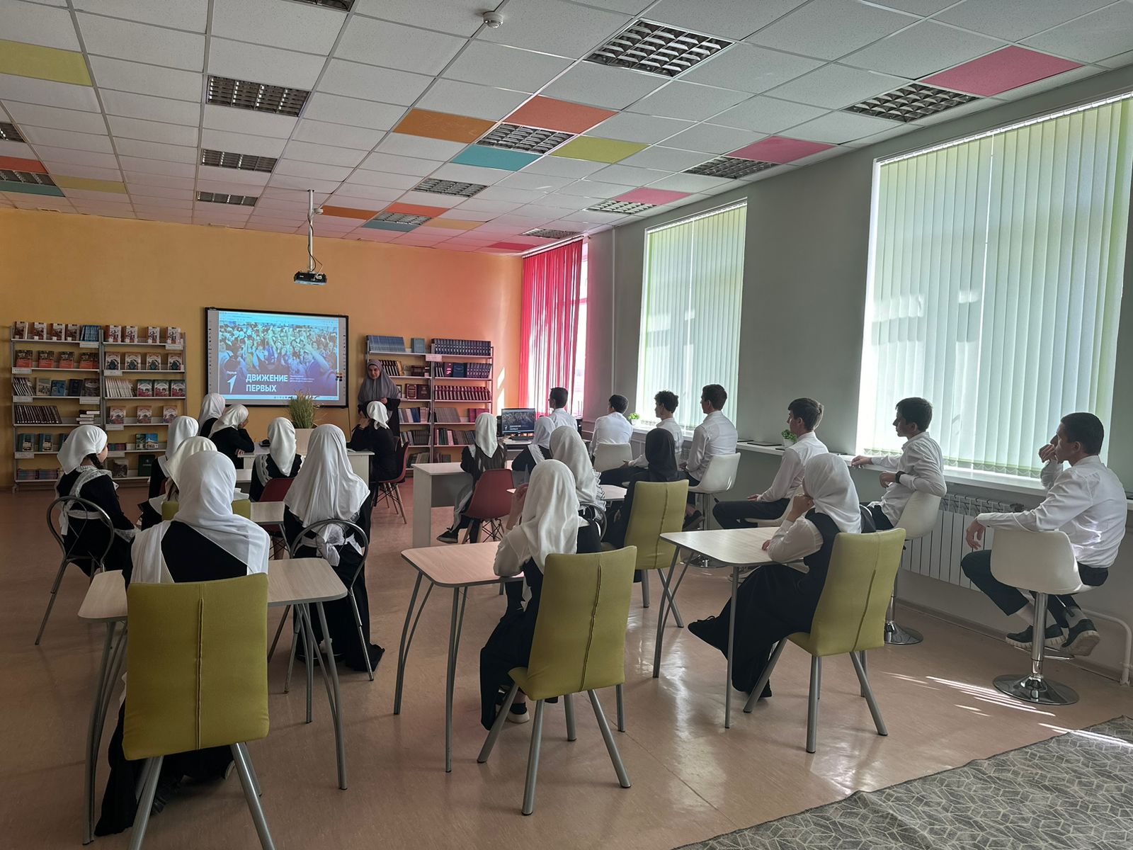 1 октября 2024 года в МБОУ «Каргалинская СОШ 1» Шелковского муниципального района ЧР, под руководством советника директора по воспитанию Хадисовой З.Х., прошла встреча- презентация Российского движения детей и молодёжи «Движение первых».