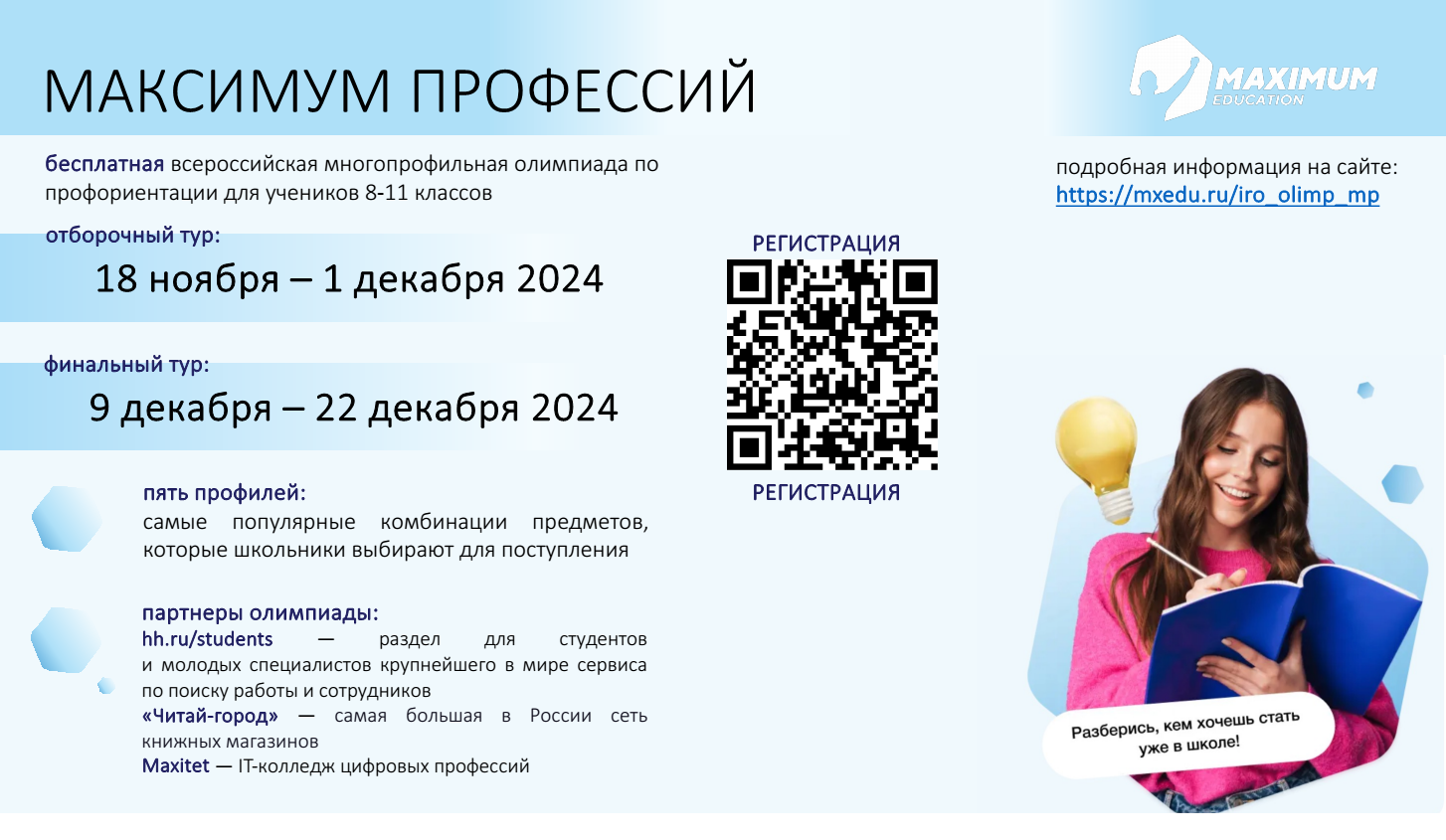Регистрация на участие и подробная информация об олимпиаде поссылке :https://mxedu.ru/iro_olimp_mp